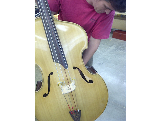 Carbon Fiber Sound Posts installed in bass at 2012 Oberlin Bass Workshop.